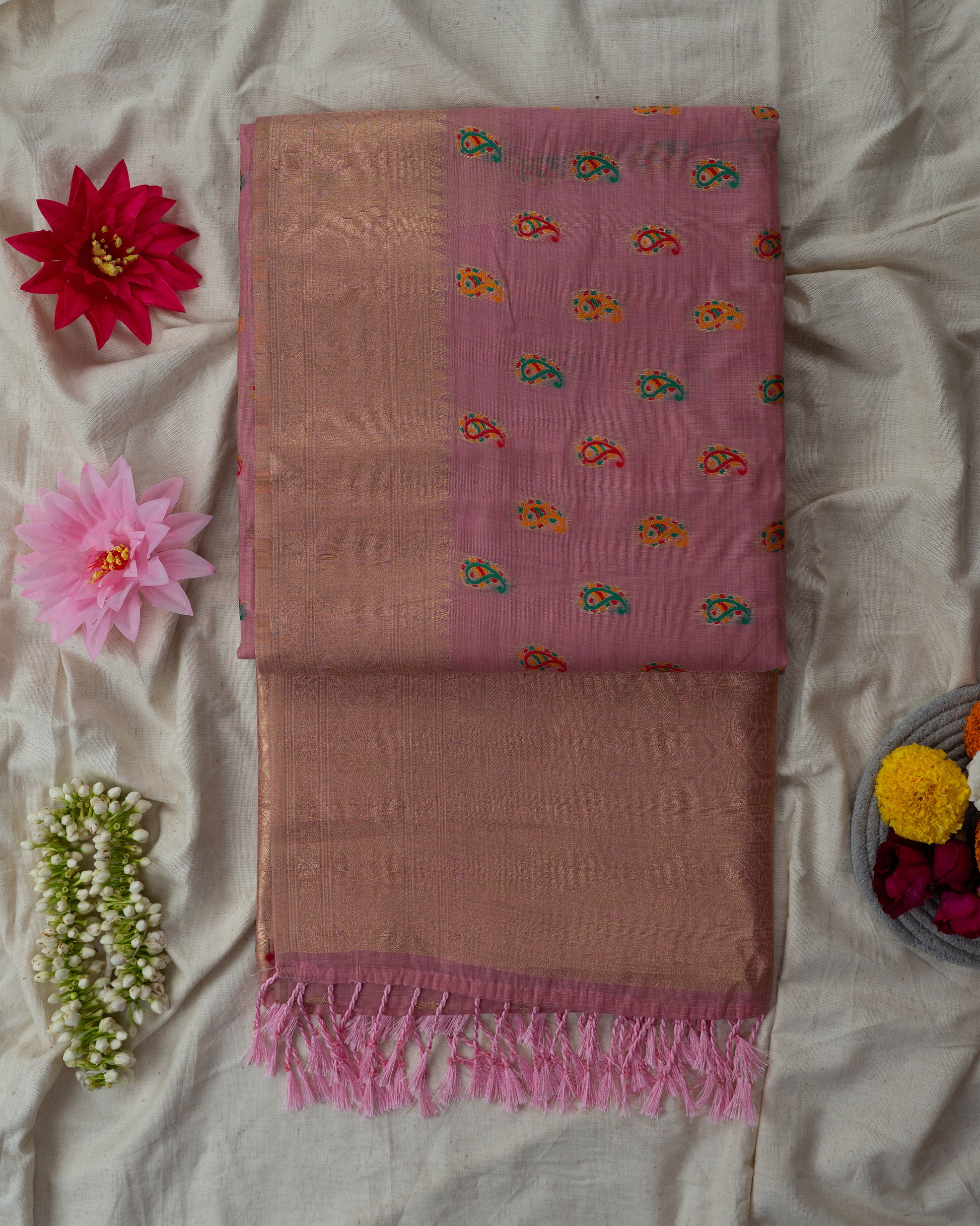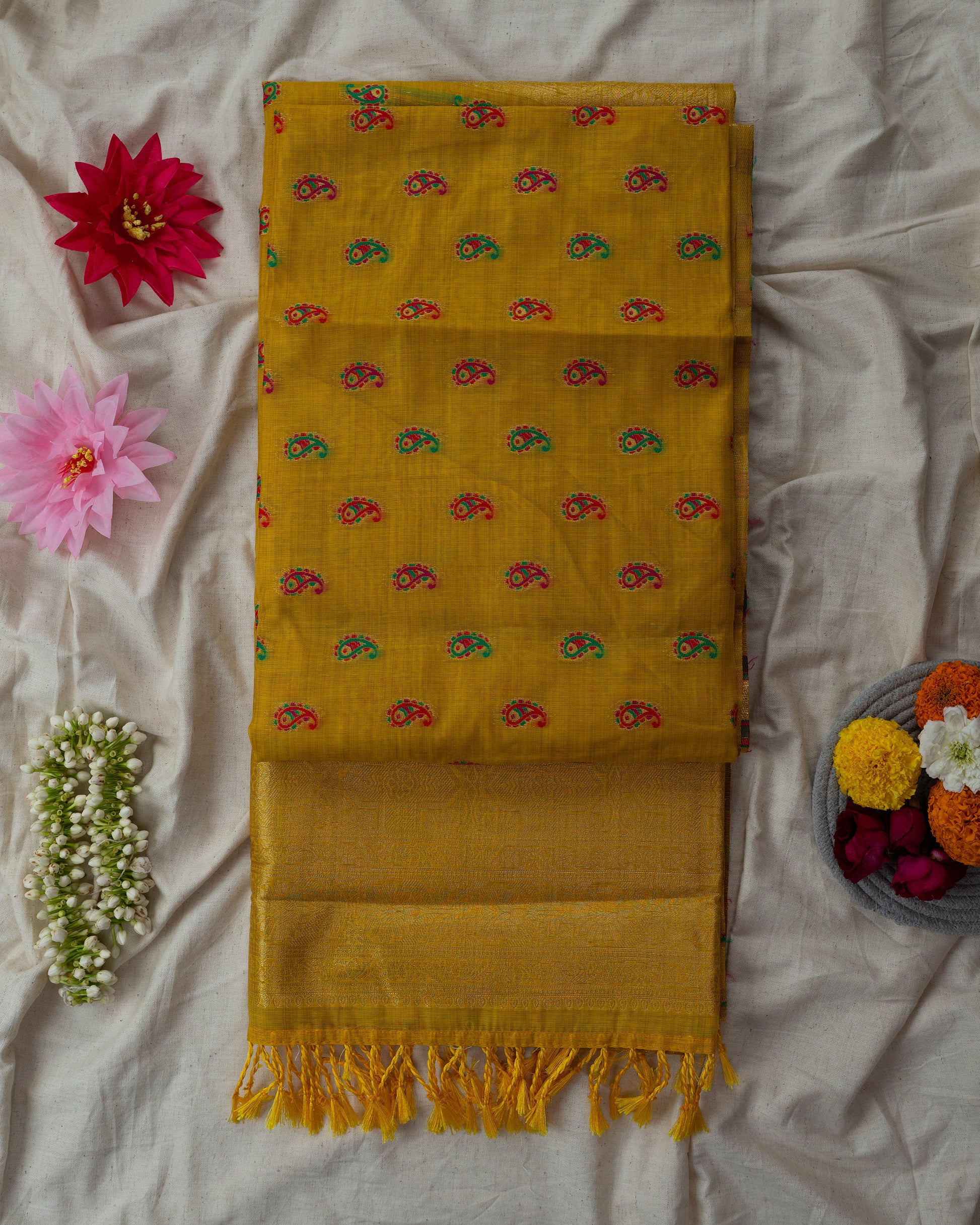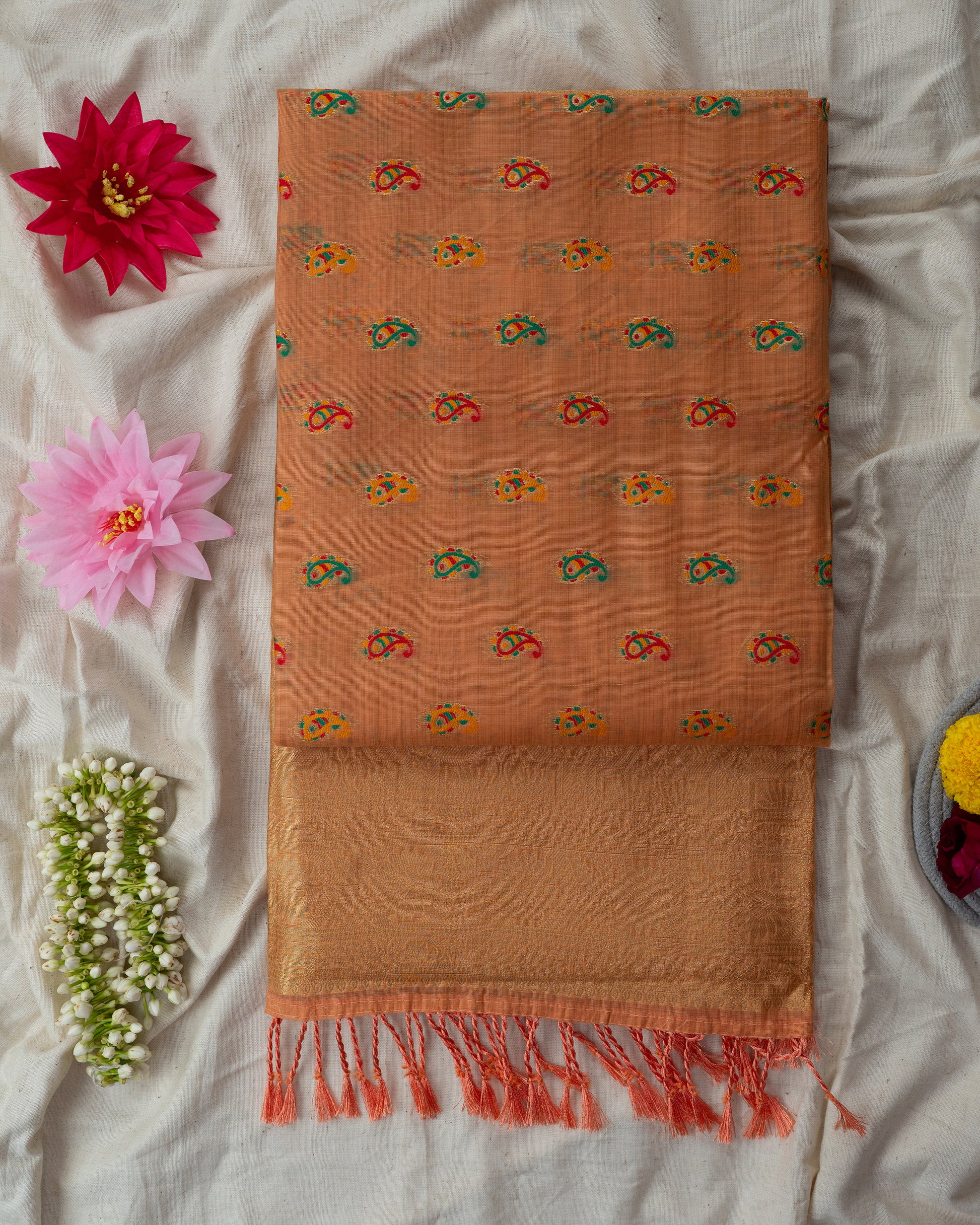 Handwoven Motif Saree with Soft Gold Border – Elegant Ethnic Wear