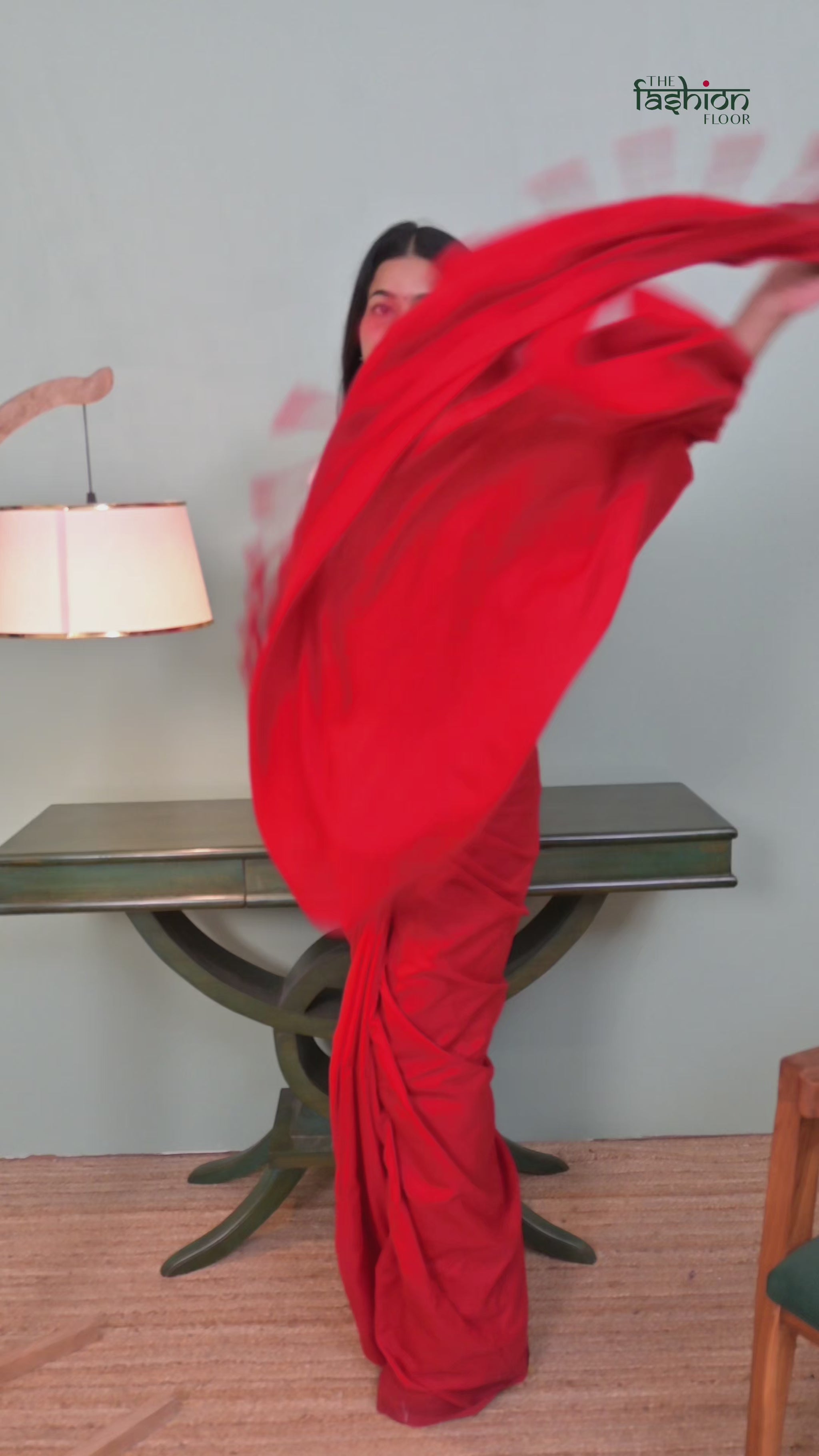 • Rich crimson red solid saree