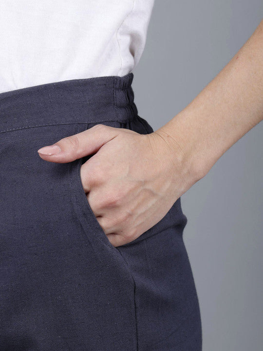 Step into effortless elegance with these Women’s Charcoal Mist Grey Slim-Fit Cigarette Pants—crafted for a refined, versatile, and modern look. Designed with a mid-rise waist, minimal pleat detailing, and a streamlined tapered silhouette, these trousers offer a flattering and comfortable fit ideal for office wear, smart casual styling, travel, and daily use.