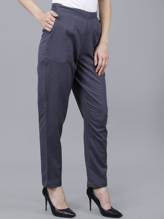 Charcoal mist grey slim-fit cigarette pants with a clean tailored fit—ideal for office, daily wear, and smart casual styling.